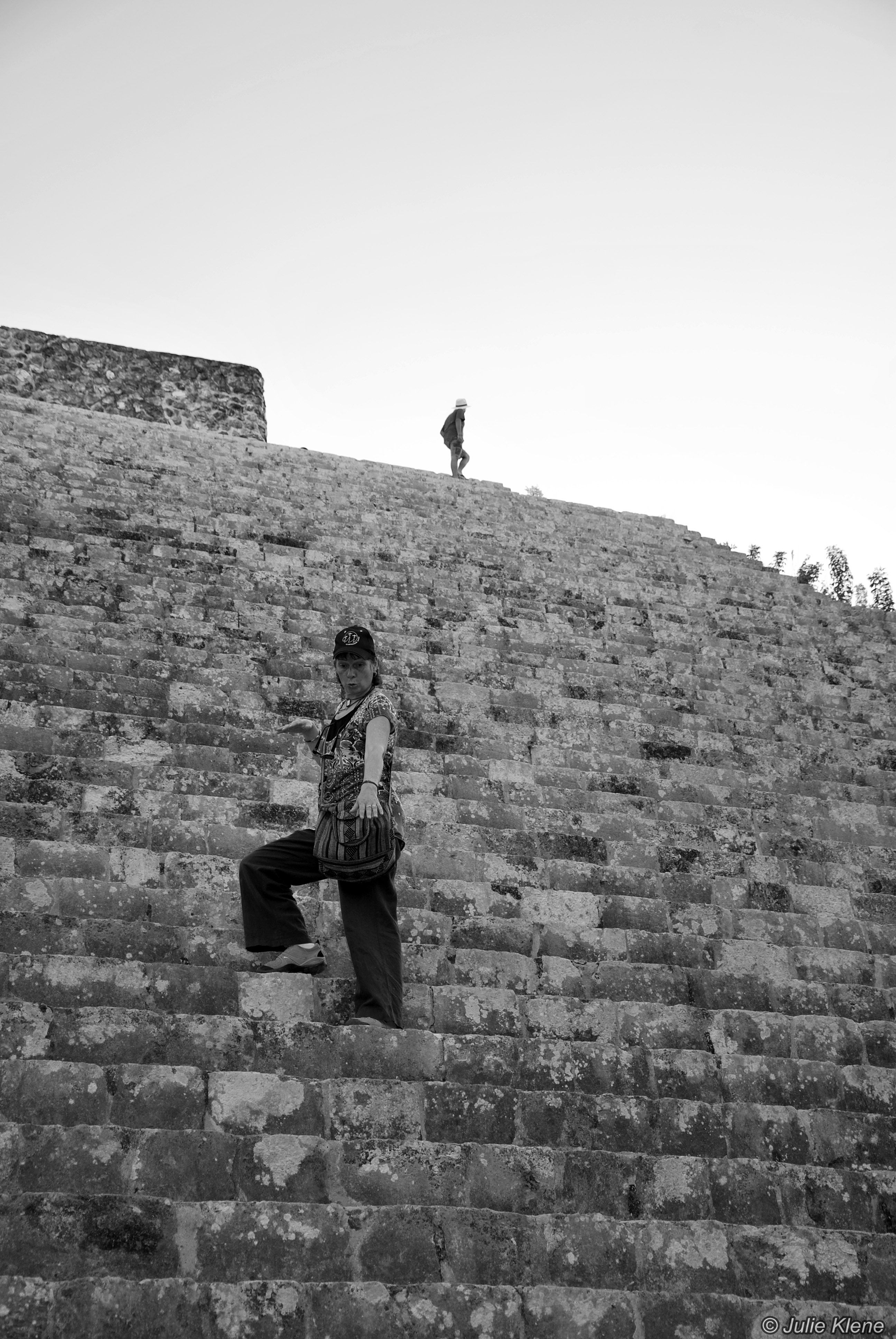 climbing down, Uxmal, Mexico