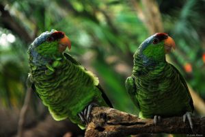 guacamayas verdes, Xcaret, Playa del Carmen, Mexico