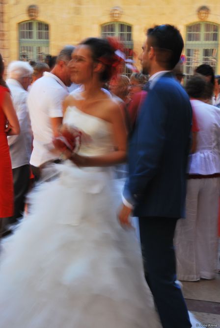On an August Saturday, in front of the Mayor Hall downtown Aix-en-Provence, 3 couples were waiting to be united in the eyes of the law. One in particular caught my eye but I shot a bit too fast… An addition to the wedding pictures series and to the blurry one as well 😉