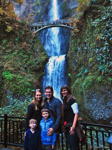 Así es que nos fuimos de visita y nos paramos en varios lugares.  Las Cataratas de Multnomah, a 45 minutos al este de la ciudad, están en la Garganta del rio Columbia.  Miden 189 m. de altura con un salto grande de 165 m.; son majestuosas y hay un sendero pequeño de 2 kms. hasta la cumbre para ver el espectáculo desde arriba.
