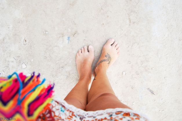 Walking in the sand streets of Holbox island, Mexico.