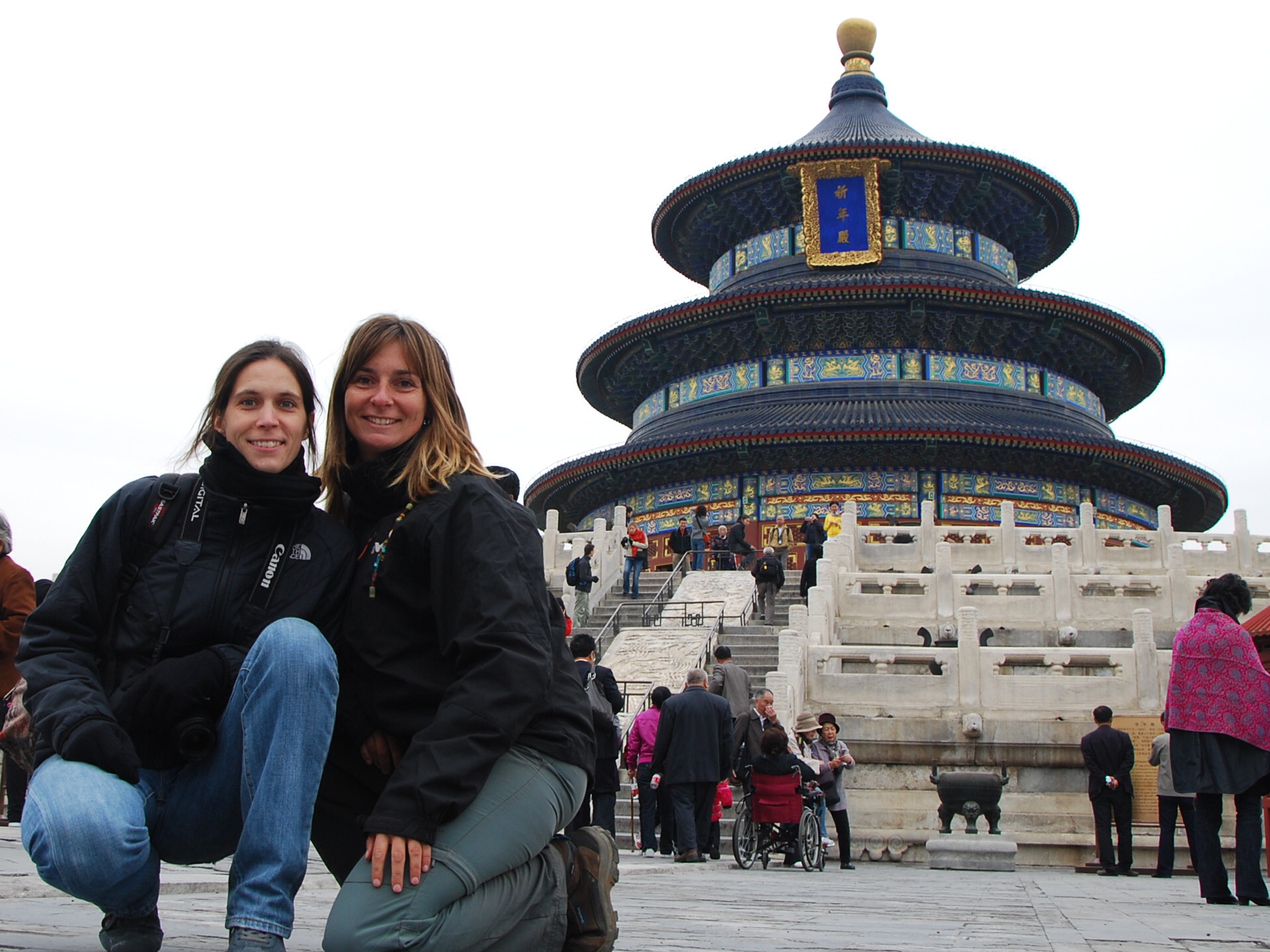 Originally, we were supposed to spend 3 weeks in China. But, with all the delays and the last long one in Vietnam, we decided to focus our visits on Beijing, the capital, and the Great Wall. Once more hosted by another couchsurfer (still on!), Matteo and then by Liu (whom I had met while boating the canals in Ayuttaya, Thailand), Ethel and I saw most of the sacred palaces and gardens of the city : Donghue Temple, Lama Temple, Bell & Drum Towers, Confucius Temple, Temple of Heaven, Tien An Men Square, the Forbidden City and the Summer Palace. Everything with a few rays of sunlight, sometimes a bit of rain and mostly in the fog.